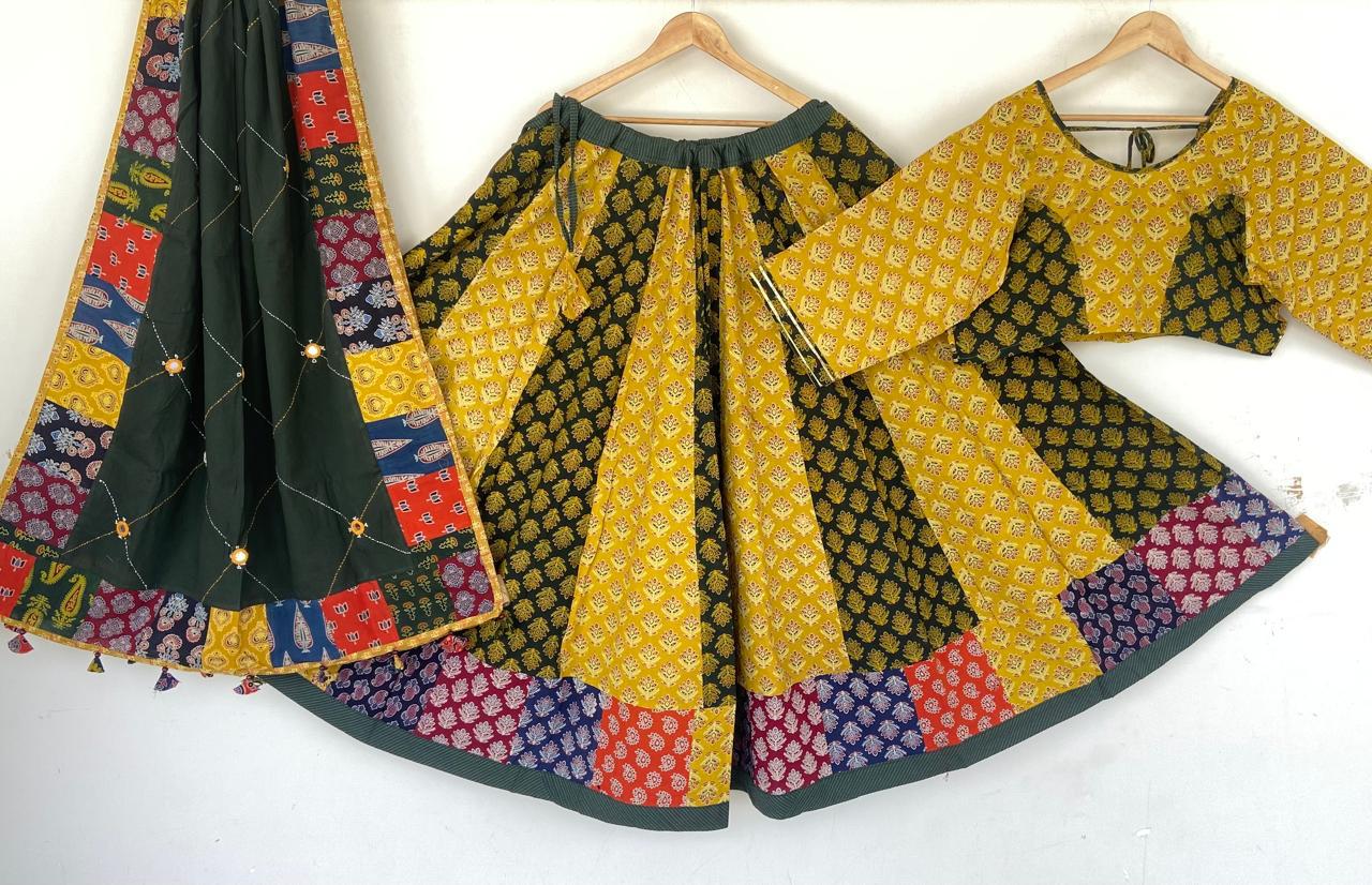 Alpana Kutch Creations brings you an exclusive collection of hand-embroidered Chaniya Cholis directly from the artisans of Kutch.