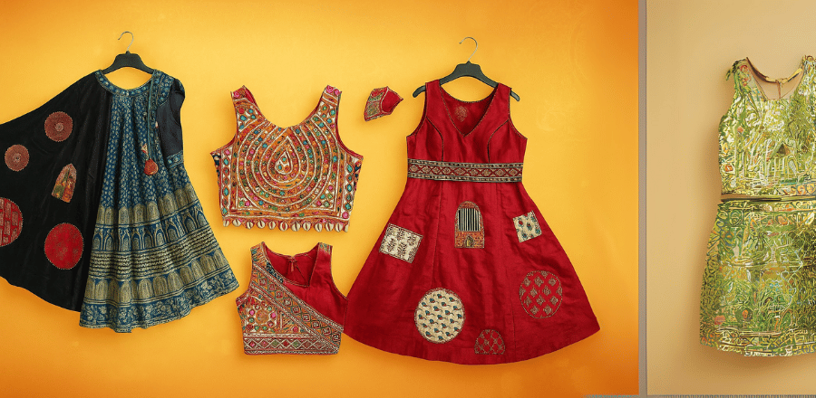 - Mirror work and embroidery inspired by Kutch and Saurashtra artisans.