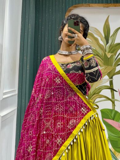 Pure Modal Gaji Ajrakh Top with Bandhej Gharchola Dress – Hand Gotta Patti Work quantity