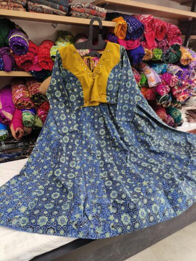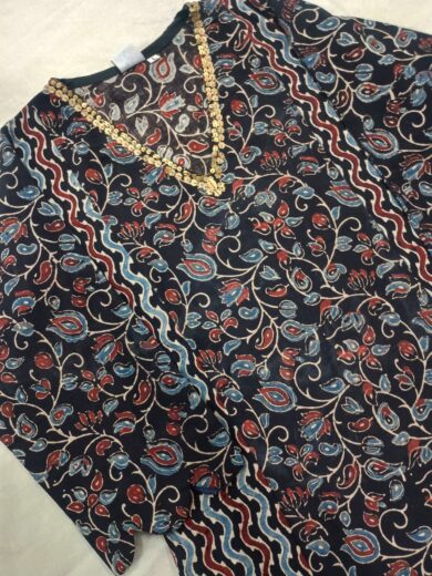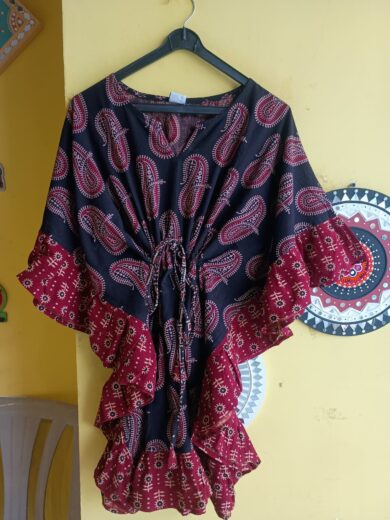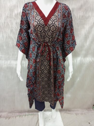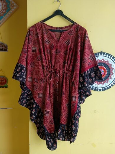 Ajrakh Hand Block Cotton Short Kaftan – Kutchi Style
