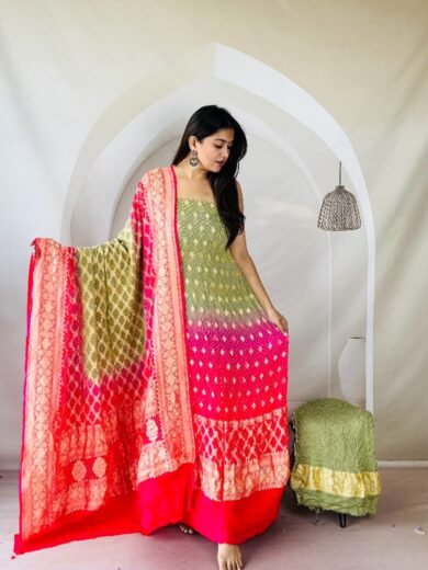 Pure Banarasi Georgette Bandhani Dress