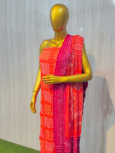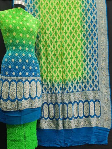Pure Banarasi Georgette Double mina Nimjari Rai Bandhej Dress material