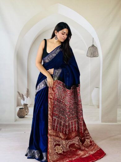Ajrakh Handblock Printed Modal Silk Saree Collection