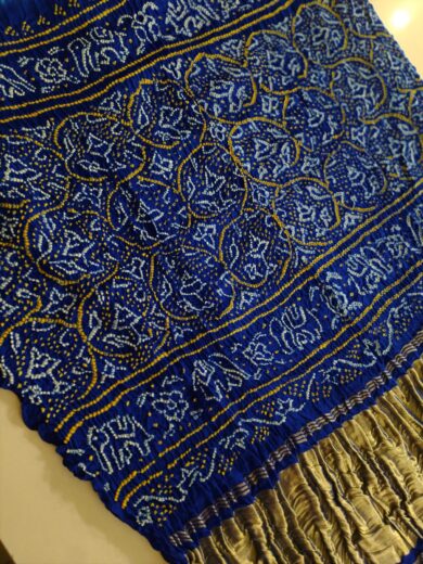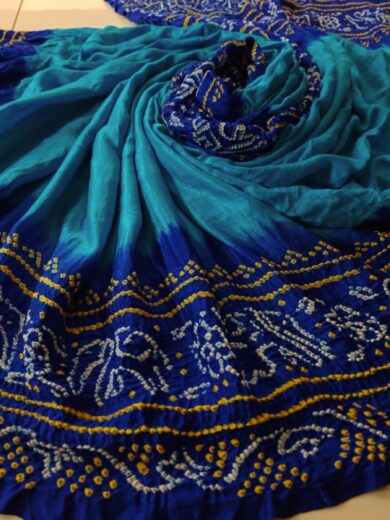 Peacock Blue – Pure Gaji Silk Raei Bharti Bandhej Saree