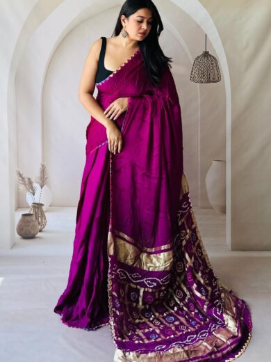 Red Maroon with Bottle Green – Premium Gaji Silk Bandhej Saree